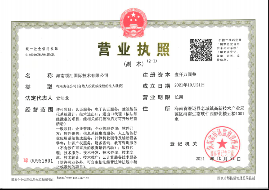 版权所有:领汇认证中心有限公司 ©2024 TIANYANCHA